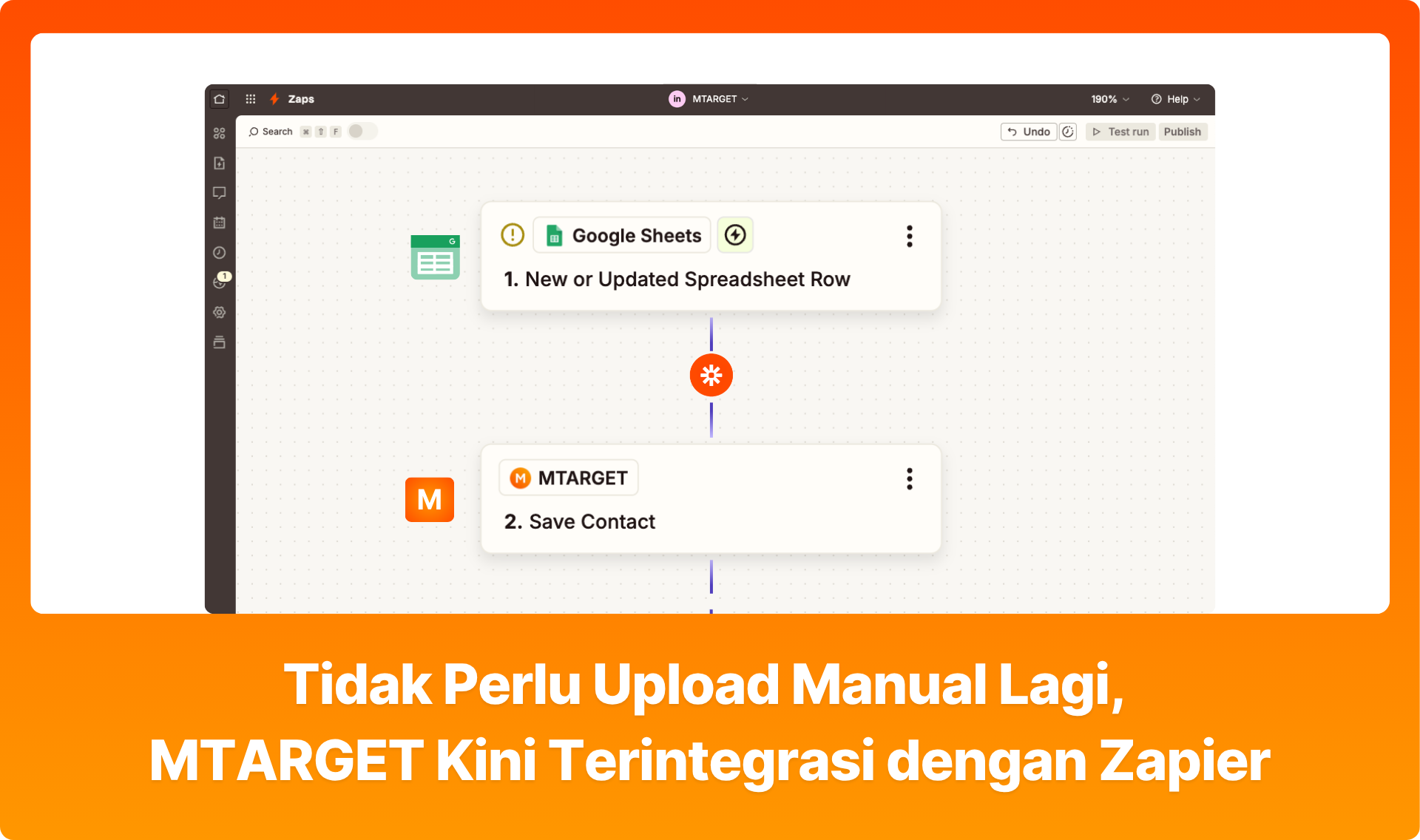 Tidak Perlu Upload Manual Lagi, MTARGET Kini Terintegrasi dengan Zapier Email Marketing | 10 Nov 2025 Integrasikan MTARGET dengan Zapier untuk sinkronisasi data otomatis tanpa coding. Lebih cepat, efisien, dan real-time.