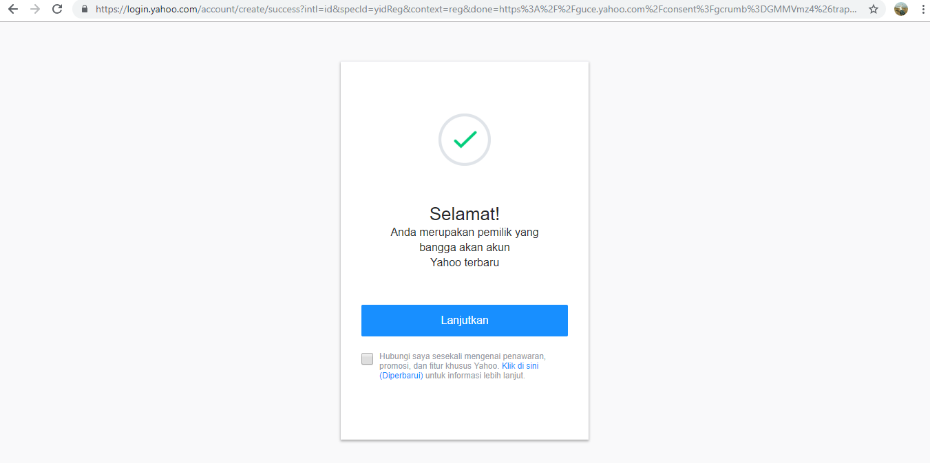 Selamat, kini Anda sudah memiliki akun Yahoo