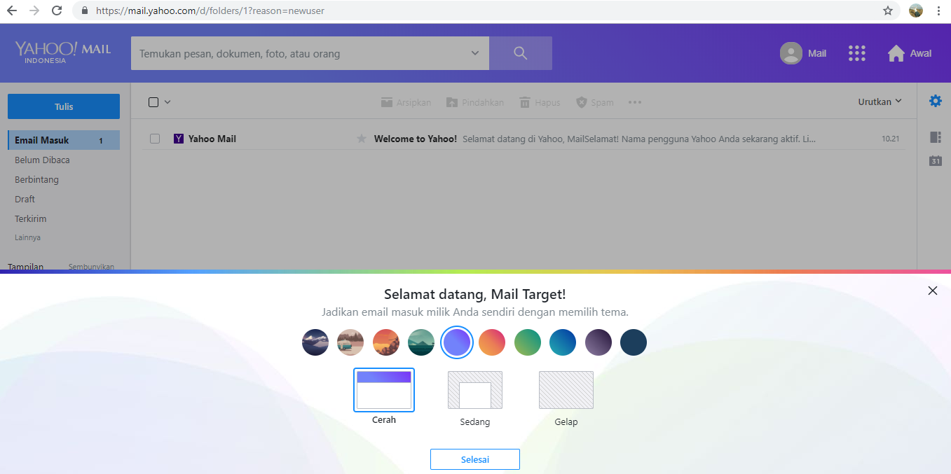 Terakhir, aturlah tema Yahoo sesuai dengan selera dan keinginan Anda