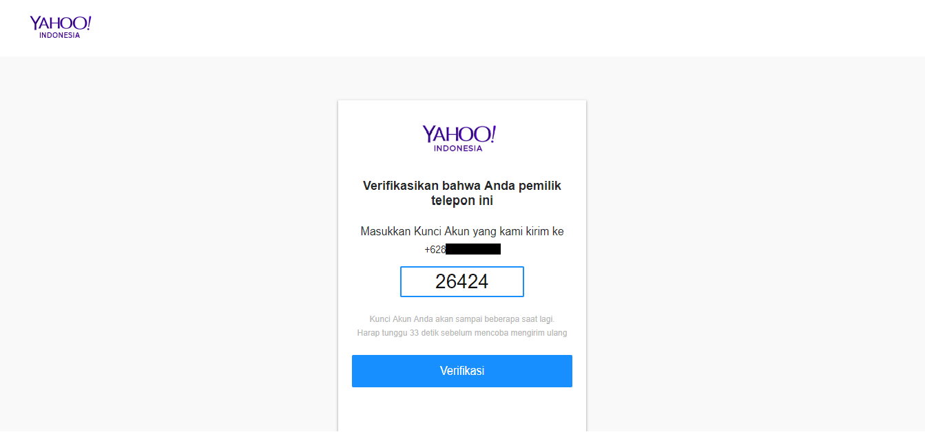 Anda akan diberikan kunci akun melalui nomor telepon, kemudian masukkan kunci akun dan klik ‘verifikasi’